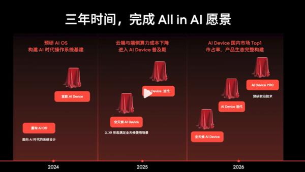 在視頻(pín)最後,沈子瑜稱,魅族還(hái)将帶來(lái)一款全新的(de)AI終端産品,爲核心用(yòng)戶帶來(lái)更加沉浸的(de)AI交互體驗。未來(lái)三年時(shí)間内,魅族将完成All in AI願景。其中2024年預研AI OS,構建AI時(shí)代操作系統基建,2025年實現雲端與端側算(suàn)力成本下(xià)降,進入Al Device普及期,2026年做(zuò)到AI Device國内市場(chǎng)Top1,市占率、産品生态完整構建。