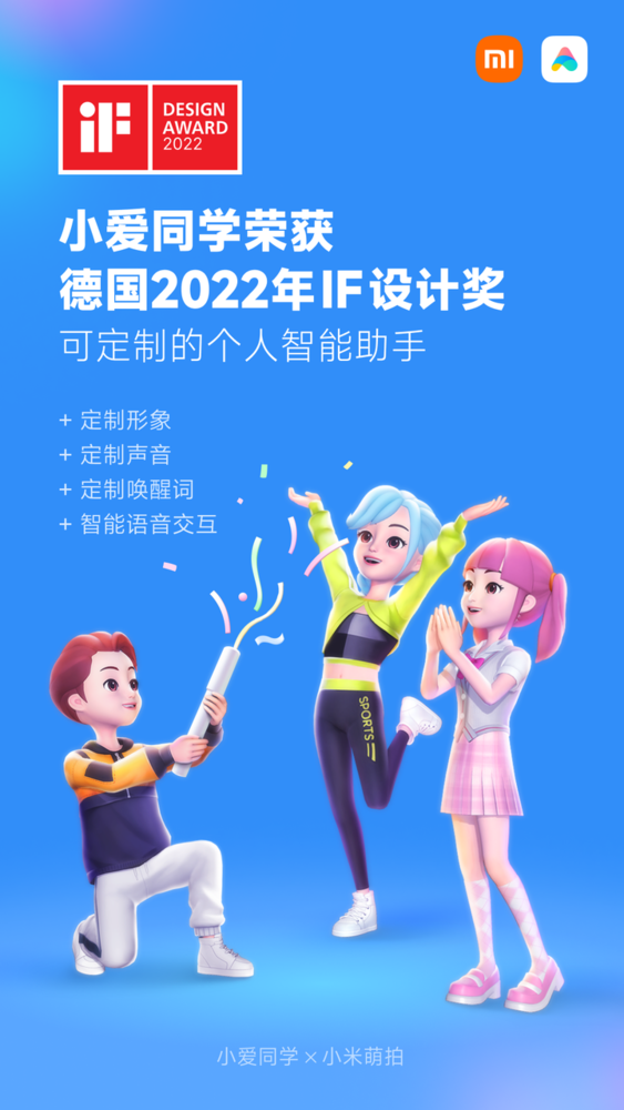近日,在2022德國iF設計大(dà)獎中,小愛(ài)同學憑著(zhe)全方位定制能力(小愛(ài)定制),成功斬獲iF設計大(dà)獎用(yòng)戶體驗(UX)獎。iF産品設計獎被國際公認爲當代工業設計領域中的(de)卓有聲望的(de)大(dà)獎,與紅點獎(RedDot)和(hé)IDEA獎并稱爲世界三大(dà)設計獎。