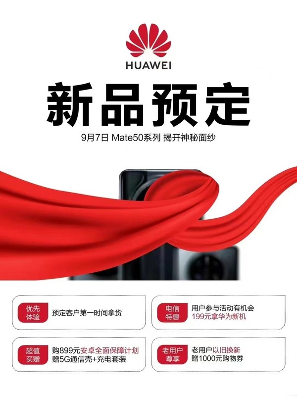 不過,上面曝光(guāng)的(de)宣傳頁并不是華爲官方的(de)。從圖中的(de)文字信息來(lái)看,這(zhè)張圖應該出自中國電信之手,上面顯示華爲Mate50系列接受提前預定:“預定客戶第一時(shí)間拿貨”,消費者加入899元安卓全面保障計劃還(hái)能獲贈5G通(tōng)信殼+充電套裝。