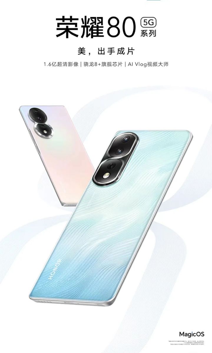 11月(yuè)23日,榮耀迎來(lái)極具突破性意義的(de)新品榮耀80系列,搭載全新MagicOS7.0系統智慧互聯,越用(yòng)越好用(yòng)!主打賣點高(gāo)顔值和(hé)1.6億超清影(yǐng)像,采用(yòng)是交融雙鏡設計,配色看起來(lái)非常優雅,辨識度很高(gāo),180g的(de)機身重量和(hé)7.7mm的(de)厚度,顯得(de)格外輕薄。