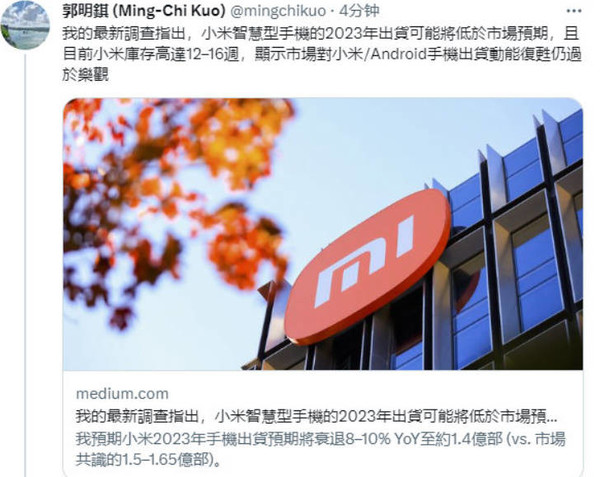 庫存積壓 生産疲軟 預計小米23年手機出貨量将繼續衰退