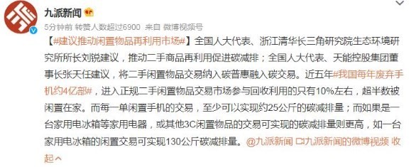 今年有人(rén)大(dà)代表注意到了(le)這(zhè)個(gè)問題。全國人(rén)大(dà)代表、浙江清華長(cháng)三角研究院生态環境研究所所長(cháng)劉銳建議(yì),推動二手商品再利用(yòng)促進碳減排。全國人(rén)大(dà)代表、天能控股集團董事長(cháng)張天任也(yě)建議(yì),将二手閑置物(wù)品交易納入碳普惠融入碳交易。