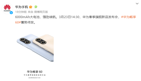 華爲暢享60正式官宣 6000mAh大(dà)電池堪比随身充電寶