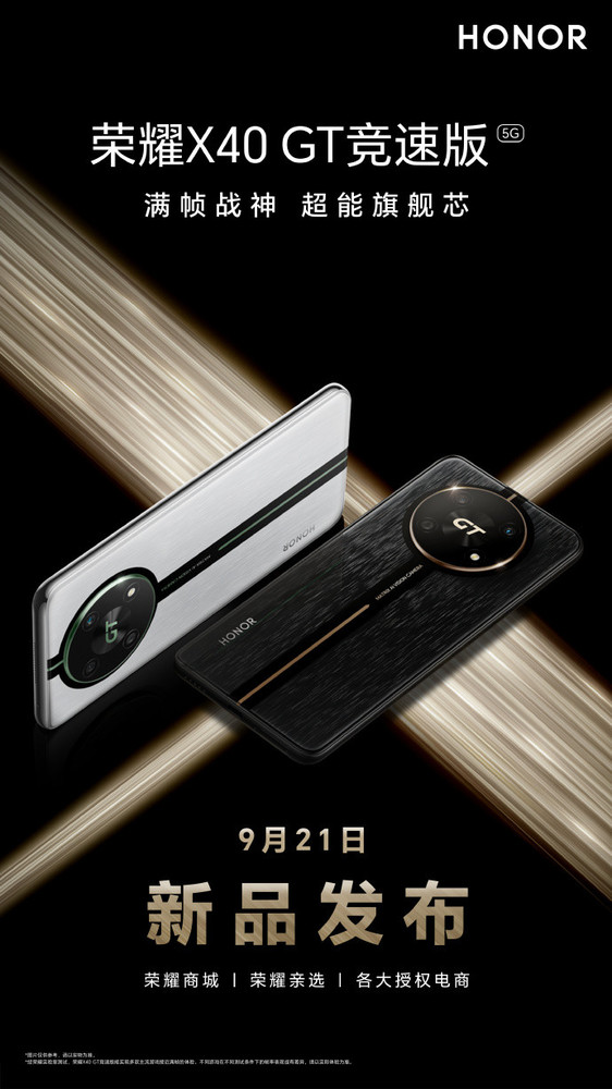 榮耀X40 GT競速版官宣 9月(yuè)21日發布 最大(dà)512GB儲存