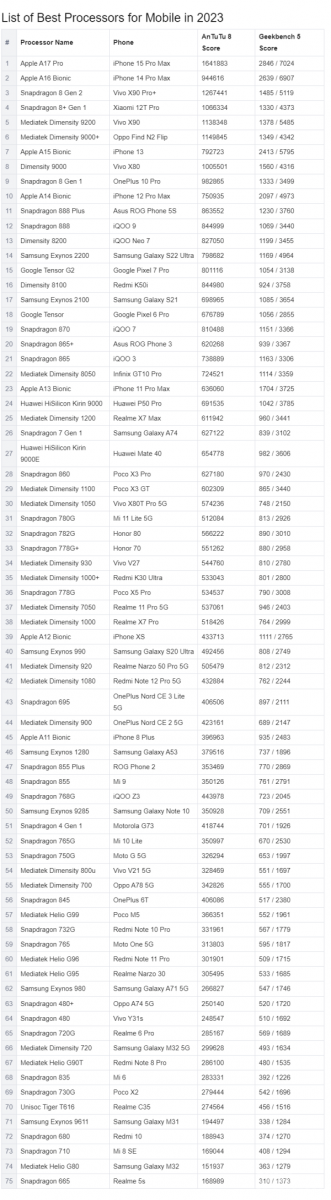 篇幅有限,大(dà)家可(kě)以看看自己手機的(de)芯片排在第幾名。